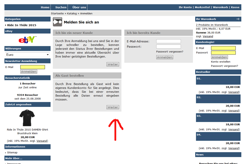 man kann die T-Shirts auch als Gast bestellen, ohne sich im Shop