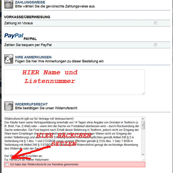 Zur Abwicklung der Bestellung: